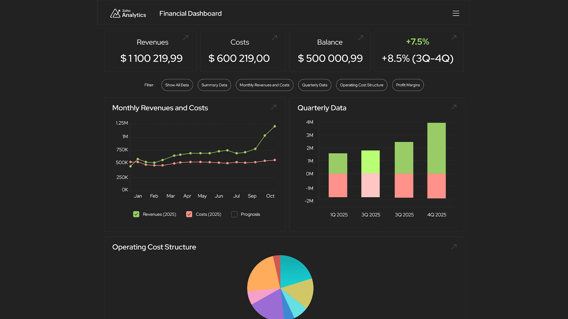 Zoho Analytics is a sophisticated Business Intelligence (BI) platform designed to transform your data into actionable insights effortlessly. It enables you to create comprehensive reports, interactive dashboards, and detailed business analyses with an intuitive interface—no programming skills required.