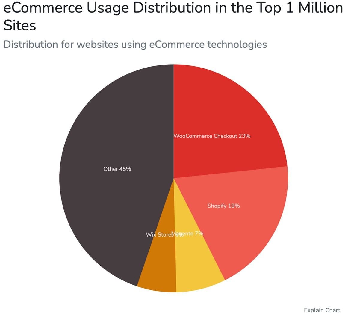Wykorzystanie technologii ecommerce, źródło: trends.builtwith.com/shop