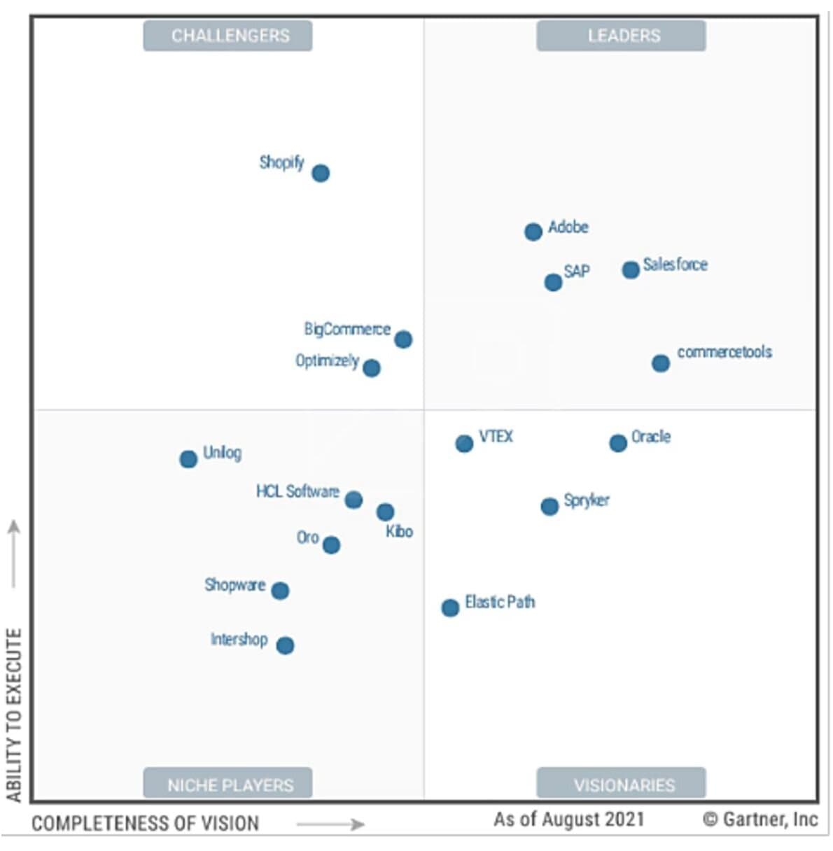 Adobe Commerce (Magento) zostało sklasyfikowane przez uznaną instytucję badawczo konsultingową Gartner, jako absolutny lider swojego segmentu Digital Commerce, źródło: Gartner
