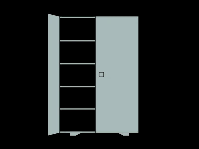 Szafa reprezentuje fizyczne zasoby klastra. Jedna szafa to jeden serwer posiadający określone zasoby CPU/RAM i przestrzeni dyskowej - fachowo jest to Node (węzeł). Rozmiar szafy powinien zostać dobrany tak, aby największe z pudełek jakie posiadamy mogło się swobodnie zmieścić. W przypadku Kubernetesa, rozsądnym jest aby minimalnie były dwa Nody (szafy) - awaria jednego z nich nie spowoduje zaniku działania systemu.