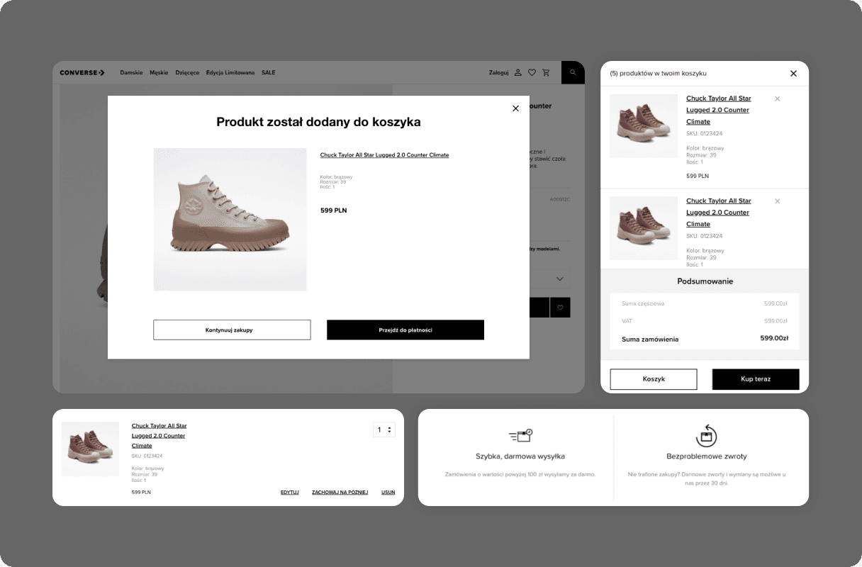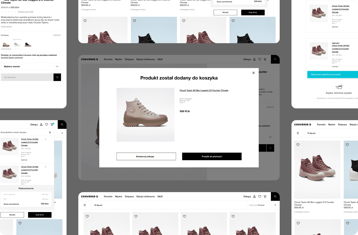 Dywersyfikując kanały dotarcia do klienta dostosowaliśmy strony do urządzeń mobilnych, skupiając się poprawieniu doświadczeń zakupowych użytkowników. Intuicyjny i funkcjonalny proces finalizowania zamówienia zagwarantował klientom sklepu najwyższy komfort składania zamówień, bez względu na urządzenie.
